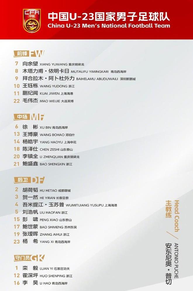 对手混乱,对中国队有利,但打铁还需自身硬。1月7日,U23国足最终名单正式确认,与此前亚足联官网公布的名单相同,U23没有调整,朱鹏宇、依木兰没有上榜。只是鲍世蒙和鲍盛鑫的位置发生了变化。本届赛事,U23国足阵中拥有王钰栋、拜合拉木、蒯纪闻等7名成人国家队国脚。